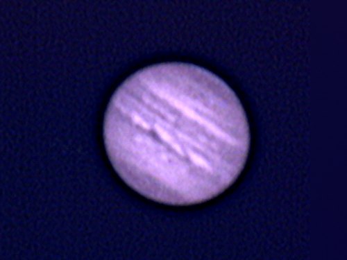 Im nahen Infrarot kommen viele Weiße Ovale und vor allem in den gemäßigten Breiten viele helle und dunkle Spots heraus. Die EZ zeigt sich von Girlanden durchzogen und die Polarregionen sind auffällig dunkel (eigentlich klar, oder?). Gegen Ende meiner Beobachtungen ziehen Wolken auf, aber mehr als diese beiden Objekte macht heute ohnedies keinen Sinn. |