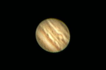 Trotz nicht so optimalen Seeings in geringer Höhe ist Jupiter interessant, sieht man doch nicht nur den GRF, sondern auch "Red Junior", der, da im anderen Rotationssystem, dem GRF schon sehr nahe gekommen ist. Obige Aufnahme ist das Komposit von zwei Webcamserien, eine mit IR Sperrfilter für die Farben (nur ca. 300 verwertbare Frames), eine mit IR Passfilter für den Kontrast, hier sind ca. 700 Bilder gestackt. Zentralmeridian (für die IR-Komponente) System I = 246°, System II = 135°. Aufnahme mit 12" LX200 und 3m Brennweite (f/10).
