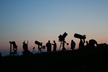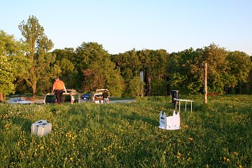 Schon bei Sonnenuntergang beginnt der Aufbau, denn wer früher kommt, bekommt natürlich den besten Stellplatz fürs Fernrohr. Aber bitte, Platz ist hier genug.