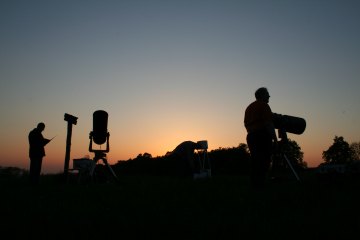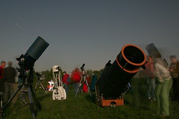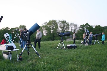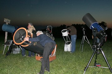 Das Ergebnis all dieser Umstände ist eine Zusammenkunft von Hobbyastronomen mit ihren Instrumenten, die so manchem Teleskoptreffen alle Ehre machen würde. Und das bei Vollmond, das sein noch erwähnt. Aber man kann sich's halt nicht aussuchen, wann astronomische Ereignisse stattfinden.