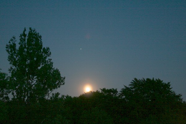 Bis die Fragmente von Schwassmann-Wachmann 3 hoch genug stehen, bleiben einige Stunden Zeit; trotz Vollmonds werden sogar Deep Sky Objekte beobachtet, die Durchsicht ist sehr gut. Der helle Mond beleuchtet unser Teleskoptreffen, über dem nur die hellsten Sterne den Wettstreit mit dem hellen Himmelshintergrund bestehen.