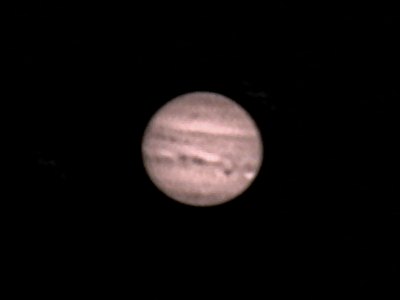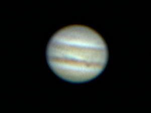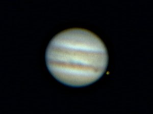 Der Regenbogen ist heute nicht so strahlend wie vergangenen Sonntag. Die Wolkendecke löst sich auch nicht auf und so denke ich nicht im entferntesten ans Beobachten. Frust ist angesagt angesichts des Wetterberichts für das Wochenende. Alle Prognosen deuten in unbarmherziger Einhelligkeit darauf hin, dass das NTT zum vierten Mal in Folge ins Wasser fallen wird. Man sollte auswandern ... Zu Mitternacht ein letzter Blick zum Himmel. Ein letzter? Meine Müdigkeit ist schlagartig verschwunden angesichts eines strahlenden Sternenhimmels. Der Gedanke, dass dies meine einzige Beobachtung an diesem langen Wochenende werden könnte, lässt mich aufbauen. Morgen ist Feiertag, ich muss nicht früh aufstehen, also - los geht's! Natürlich ist Jupiter das erste Ziel. Das Seeing ist lausig und zeitweise zieht eine hochnebelartige Bewölkung durch. Seltsam. Ich verfolge das Ende eines Durchgangs und Schattenvorübergangs von Io so gut es geht. Bei diesem Seeing mach ich Aufnahmen mit der Webcam mit 3m Brennweite.