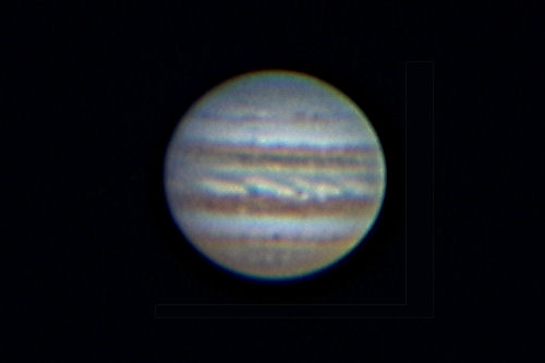 Schade, dass die ruhigere Seite des Planeten ohne die Roten Flecken zu sehen ist. Aber auch diese Seite zeigt überraschend viele Details, heute auch in den Polarregionen. Und die Turbulenzen in der EZ sind markant wie eh und je mit den charakteristischen blauen Girlanden. Das SEB (oben) zeigt ein auffälliges dunkles Band in seiner Mitte.