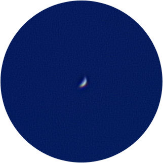In der Dämmerung jagen wir natürlich die horizontnahen Planeten im Nordwesten. Schon lange vor Sonnenuntergang hat mein LX200 den Merkur aufgestöbert, und bald ist er kontrastreich genug für die Webcam. Wenig später auch Saturn. Das Seeing ist wirklich gut. Die Phase des sonnennahen Planeten kommt sehr gut heraus, er ist schon eine dünne Sichel (und entsprechend lichtschwach, mit freiem Auge schaffen wir es nicht mehr). Auch Saturn ist wunderschön, trotz der geringen Höhe. Der 6,75 mag helle Stern HIP 42970 wird von vielen für Titan gehalten, doch er ist zu hell. Beide Planeten nehme ich mit der Webcam mit F=3m (f/10) auf.