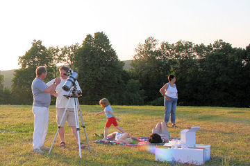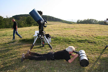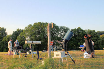 Es beginnt ein sommerliches Teleskoptreffen auf der gemähten Wiese.