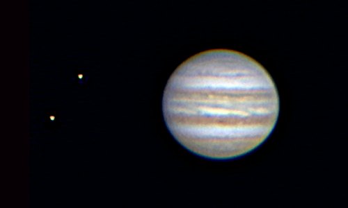 | Bericht: | Nach Abzug letzer Wolken wird es ein sehr schöner Abend. Erstes Ziel ist Jupiter, der heute leider seine eher ruhige Seite zeigt. Noch ist das Seeing recht gut. Also eine Aufnahme mit der Webcam bei F=4,5m am 12" LX200.