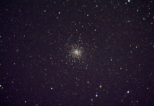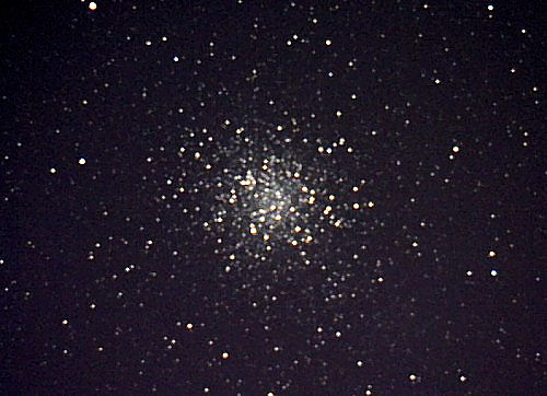 Der Kugelsternhaufen M28 steht sehr tief und gar nicht so weit von M22 entfernt. An sich kann er es durchaus mit den höher stehenden "Stars" wie M92 oder M15 aufnehmen, doch seine ungünstige Lage (und die mächtige Konkurrenz seiner helleren Artgenossen) macht ihn in unseren Breiten eher zum Exoten. Hier hat auch die Nachführung noch unexakter als sonst gearbeitet.