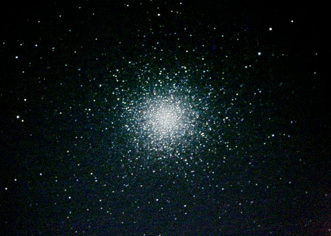 Endlich ist es dunkel genug für Deep Sky geworden und zunächst steht visuelles Durchstöbern auf dem Programm, doch dann geht es ans Fotografieren. Erstes Ziel ist der hoch stehende M13. Ich nehme mit je 20 Sekunden bei 1600 ISO auf, eine gute Kombination, wie sich herausstellen soll. Längere Belichtungszeit ist nicht drin, trotz genauer Aufstellung ist die Nachführung meines LX200 heute wieder extrem ungenau.