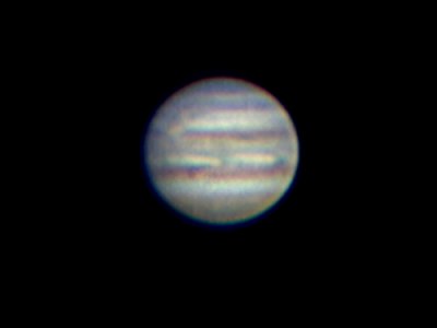 Anfangs zeigt sich Jupiter in Wolkenlücken. Wie günstig, denn GRF und Red Junior sollten zu sehen sein. Das Seeing ist an diesem heißen Abend lausig, aber eine Serie gelingt. Wirklich nur eine.