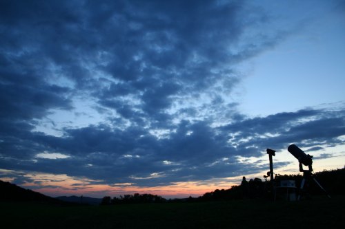 So, allein dieser Anblick war es wert, hierher gefahren zu sein. Es folgt eine längere Periode des Wartens, denn die Wolken lösen sich nicht so schnell auf wie erhofft. Eine zweite Beobachtergruppe kommt noch, wissbegierig, und so vergeht die Zeit mit Erklärungen, bis die Wolken dann doch endlich abziehen. Es bleiben zwar einige Cirren, doch dazwischen ist der Himmel unglaublich klar, so dass ich noch einmal den Himmel "leerbeobachte", bis gegen Mitternacht erneut aufziehende Wolken den Abbau nicht schwer fallen lassen. Highlights dieser Nacht: Der Hantelnebel M28 sowei beide Teile des Cirrus-Nebels (NGC 6960 und NGC 6992-5) im 40mm Pentax und UHC-Filter sowie einmal mehr M13, M92, M15 und M2. Aber auch M31 und Begleiter waren nicht ohne. |