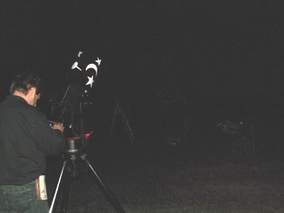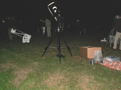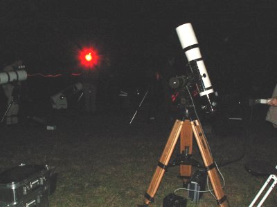| Bericht: | Heute ist wirklich Alles vertreten was +Rang und Namen+ hat. Bei meinem Eintreffen um 20 h sind bereits 10 Geräte aufgebaut, weitere 8 Folgen.. Damit sind 19 Teleskope und etliche Feldstecher im Einsatz . Obwohl wir natürlich genau wissen wann der Mond aufgeht wird das Warten unheimlich lang und wir vertreiben uns die Zeit mit vielen Deep+sky Objekten Auch einige schaulustige Gäste haben sich eingefunden und endlich schimmert der Mond durch die Bäume über dem Hotel. Atlas verschwindet schlagartig hinter dem Mond Es ist immer wieder beeindruckend die Bewegung der gigantischen Steinkugel gegen die scheinbare Himmelsdrehung geradezu fühlen zu können Vor lauter schauen vergesse ich auf Fotos durch den 18 Zöller durch den auch sehr viele lichtschwache Sterne zu sehen sind ,da gibt es ständig etwas zum schauen. Besonders beeindruckend ist dann das plötzliche Aufblitzen von Alcyone Wir warten noch auf das Bedeckungsende von 28 Tauri Pleione Deep+sky ist jetzt auch vorbei und so geht ein tolles und beeindruckendes Ereignis zu Ende.