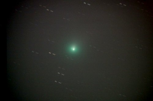 | Bericht: | Der tägliche Blick zum Kometen. Heute erkennt man auf der Aufnahme einen sehr kurzen, kernnahen Schweifansatz sehr deutlich.