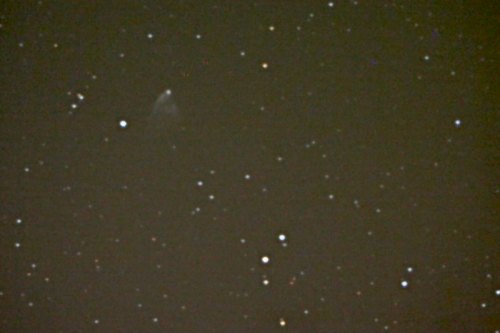 Eigentlich schade, dass dieser Haufen so unbekannt ist. Aber die "Konkurrenz" am Winterhimmel ist ja wirklich mördersich. Es geht weiter mit grenzwertigen Exoten. NGC 2244 ist jedenfalls schon zu groß für diese Brennweite. Und NGC 2261, Hubbles veränderlicher Nebel, ist wegen seiner geringen Flächenhelligkeit ein Grenzfall aus der Stadt.