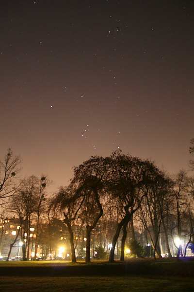 Wie bestellt gibt es heute Polarlichtwarnung, passend zum Thema Sonne. Vor drei Jahren, am 20. November 2003, hatten wir das unglaubliche Glück, dass es genau an diesem Abend wirklich ein Polarlicht gab ( siehe Bericht). Heuer klappt es knapp nicht, obwohl wir uns bei dem auffällig roten Streulicht am Horizont gar nicht so sicher sind. Mit dem Polarlicht wird es zwar nichts, aber ein letzter heller Geminide verschönert uns den Abend und passt ja auch zum Thema.