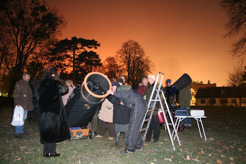 Wir zeigen im Fernrohr zunächst den Asteroiden Iris und machen dann einen weiten Vorgriff auf den nächsten Abend, wo es um die Entwicklung der Sterne gehen wird: Orionnebel, Pleidaden, offene Sternhaufen im Fuhrmann stehen auf dem Beobachtungsprogramm.
