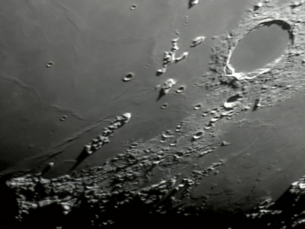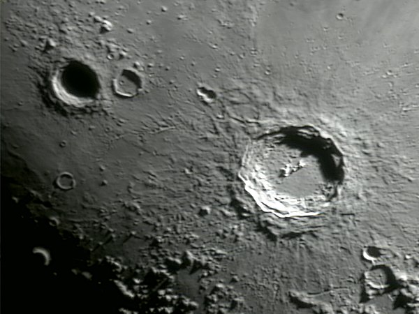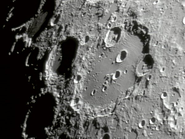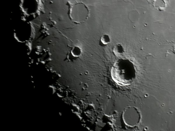 | Bericht: | Nach dem schönen Ferienspielabend am Maria-Theresien-Platz animiert mich das gute Seeing erneut zu einer Beobachtungsrunde mit der Webcam. Erstes Ziel ist der Mond. Alle Aufnahmen mit 3m Brennweite und IR Passfilter. Gestackt werden rund 200 von 600 Frames mit Registax 4, Multipoint.