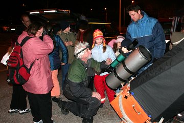 Wer will, kann auch ein eigenes Fernrohr mitbrigen, wir erklären die ersten Schritte (ausgenommen Computersteuerung, denn dafür würden wir eine Person den ganzen Abend und länger abstellen müssen, dafür gibt es bei uns Spezialseminare). Schon am ersten Abend sieht eine junge Sternfreundin zum ersten Mal den Mond durchs eigene Fernrohr.