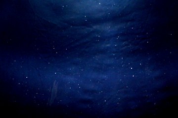 Während am Himmel echte Sterne leuchten und wir die schönsten Wintersternbilder erkennen können, funkeln vom Himmel unseres blauen Infozeltes ganz andere Sterne: Eiskristalle haben einen künstlichen Sternenhimmel gebildet, und jeder kann seine eigenen Sternbilder benennen. Bis wir das Zelt abbauen, dann verschwinden diese Sterne für immer.