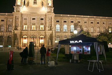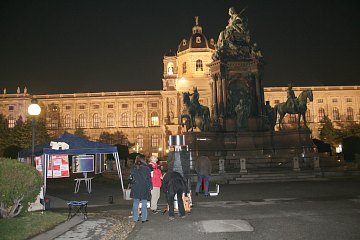 Zum anderen ist der Abend bemerkenswert wegen einer ganz neuen Lokation für das Ferienspiel: Wir bauen unsere Mobile Sternwarte am Maria-Theresien-Platz auf, zwischen den beiden Museen, vor dem Museumsquartier.