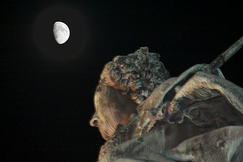 Der zunehmende Mond über der strengen Stirn Maria Theresias