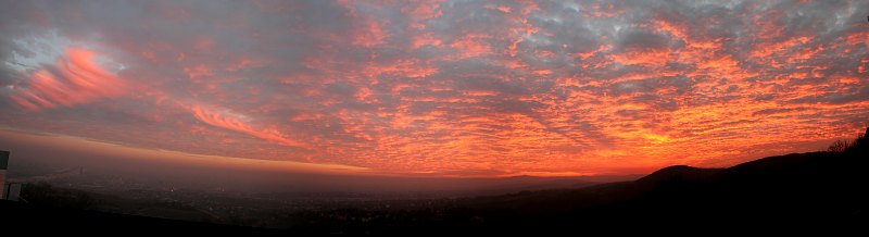 Neben mir klicken und piepsen Kameras; einige Hobbyfotografen erleben hier einen unerhofften Glücksmoment. Ich wollte das eigentlich nicht beobachten, sondern den Kometen, doch daraus wird nichts. Aber schön war es trotzdem, ich geb's ja zu! Drunten in der Steiermark müssen gute Kometenfotos gelingen. Das sehe ich von hier ... |