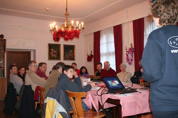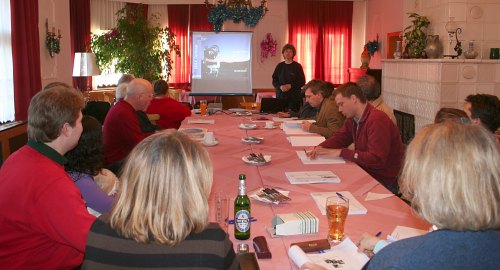 Immerhin: Es ist heuer um fast 25° wärmer als bei unserem Seminar im letzten Jahr um diese Zeit. Gegen die damaligen -15°C machen sich die +9°C am frühen Nachmittag ja frühlingshaft aus. Allerdings: Der Wind ist mindestens genauso stark wie vor einem Jahr. Doch zunächst beginnen wir ja in der warmen Stube.