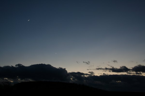 Mond und Venus über den Wolken - die, obwohl im Westen, verschwinden werden