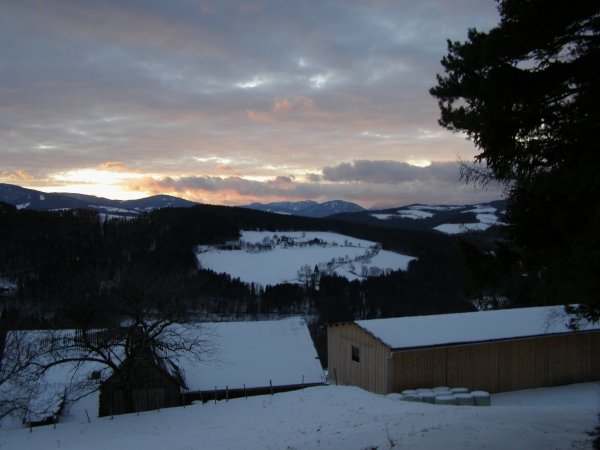 | Bericht: | Endlich fuhren wir wieder auf die Jagdhütte, heuer zum ersten Mal. Um so lieber, als das Wetter bis Wr.Neustadt versprach die Pleiadenbedeckung beobachten zu können. Aber nach Neunkirchen zog es zu und ab Seebenstein versanken wir im Schneesturm, also aus der Traum von der Pleidenbedeckung. Am nächsten Tag lichtete sich der Himmel gegen Sonnenuntergang und so beschloss ich auf den Berg zu gehen, von wo aus die Wetteraussichten besser zu überblicken sind.