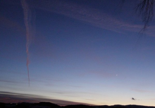 Als sich die Wolken großteils verzogen hatten strahlte Venus vom Himmel, begleitet von einem Kondensstreifen, der wie eine abstürzende Rakete aussah.
