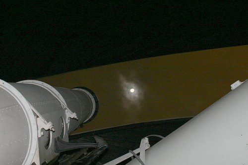 Womit wir an diesem Abend nicht gerechnet haben, ist mit einem Blick durchs Fernrohr. Und doch, der Mond zeigt sich in Wolkenlöchern.
