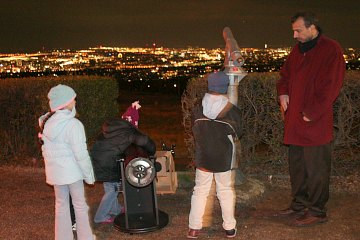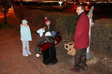 Immerhin: Eine Familie will die Chance nützen - die letzte in diesem heurigen Winterferienspiel. Wir können zumindest zwei Dobsons aufstellen, die Kinder haben an dem Blick auf Wien durchaus ihren Spass.