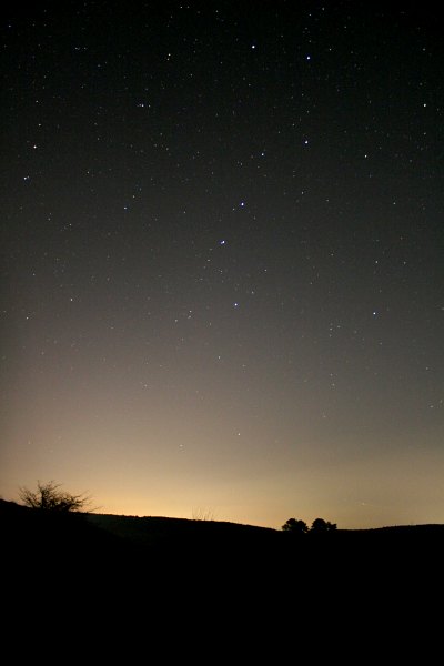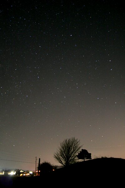 Es ist hier etwas "wärmer" als oben auf dem Berg, +2°C. Der Wind ist gnadenlos, macht keine Pause und läßt nur visuelle Beobachtungen zu. Nach dem obligaten Blick zum Orionnebel geht es zunächst auf eine Tour durch die Milchstraße zwischen Cassiopeia und Fuhrmann. Hier liegen viele offene Sternhaufen, die ich bei weniger Wind einmal genauer beschreiben muss.