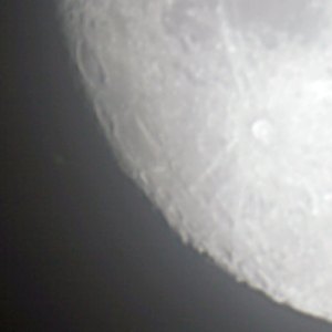 Ekliptikschiefe und Neigung der Mondbahn machen bei derzeitiger Knotenlagen einen Winkel von fast 30° aus; Saturn steht erstaunlich südöstlich vom Mond, man würde gar nicht vermuten, dass der Mond den Planeten heute Nacht bedecken soll. BOLAM verheißt eine geringe Chance, also stelle ich den Wecker auf 3 Uhr ... 3 Uhr. Ein Blick zum Himmel ist nicht verheißungsvoll. Ja, wo der Mond ist, ist zu erkennen. Es ist der helle Fleck in der geschlossenen Wolkendecke. Ich meditiere, verschlafen, einige Minuten und betrachte die rasch ziehenden tiefen Wolken, dann entschließe ich mich, das Fernrohr in Betrieb zu nehmen und auf ein Wunder zu hoffen. Wolkenloch kommt zwar keines, doch durch die diffuse Wolkendecke kann ich Saturn blickweise erkennen. Muss ein schönes Motiv sein, ohne Wolken. Kurz vor der Bedeckung mache ich zwei lausige Schnappschüsse, auf denen Saturn gerade noch zu erkennen ist. Durch Wolken. Ein Suchbild halt.