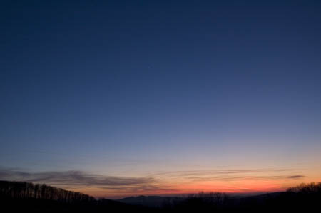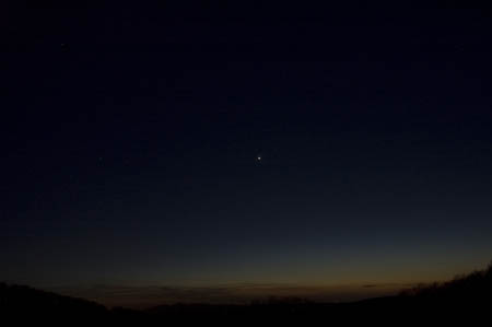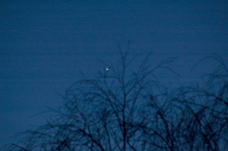 | Bericht: | Am Freitag am frühen Nachmittag bin ich auf der Fahrt von Graz nach Edlach. Graz bietet das Wetter, um das so viele von uns Michael Karrer beneiden: Wien ist zu und er macht die besten Aufnahmen. Ich nähere mich dem Semmering und - oh Wunder + es ist noch immer recht klar. Es könnte doch glatt sein, daß es heute mit der Venus erstmals klappt. Zeit hätte ich und das Wetter scheint zu passen. In der beginnenden Dämmerung baue ich den Takahashi am Dach auf doch noch steht warten am Programm, denn gerade im Westen tummeln sich augenblicklich ein paar Wolken, die aber recht rasch abziehen. Und dann taucht auch schon Venus in der Dämmerung auf. Allzu lange habe ich nicht Zeit, denn zwischen ihr und dem sowieso schon hohen Horizont ist auch noch das Geäst eines Baumes. Schnell mache ich mit der Nikon und dem 80-200 Zoom einige Aufnahmen.