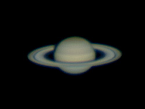 Das Seeing ist nach wie vor gut und so kann ich den Ringplaneten heute mit F=6m aufnehmen, allerdings nicht mit IR Passfilter (da wird das Bild zu dunkel), sondern mit IR Sperrfilter. Da macht sich leider doch das sekundäre Spektrum etwas bemerkbar.