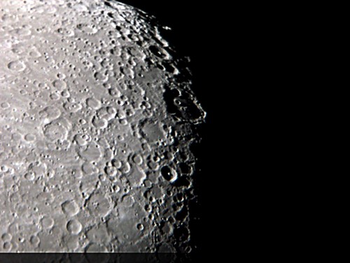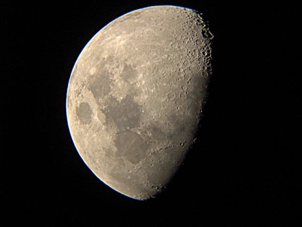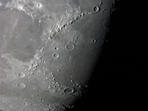 Danach schwenkte ich auf Saturn. Da die Optik nun ausreichend ausgekühlt war, konnte ich Saturn mit sehr hoher Vergrößerung beobachten. Die Cassini-Teilung war deutlich sichtbar. Sehr gut sichtbar waren auch einige Monde - Titan, Tethys, Rhea, Dione, Iapetus und Enceladus konnte ich eindeutig identifizieren! Als nächstes wandte ich mich dem Mond zu - der Star dieser Nacht! Er war so hell, dass man große Schwierigkeiten hatte Sternbilder zu erkennen - das macht eine Orientierung am Himmel erheblich schwerer. Der zunehmende Mond befand sich im Sternbild Krebs unmittelbar in der Nähe des offenen Sternhaufens M44. Die ersten Blicke durch Okular waren phänomenal. Die klare und sehr ruhige Luft ließen den Mond in atemberaubender Schönheit erscheinen! Mit einem starken Graufilter und relativ hoher Vergrößerung (bis ca. 300x) waren unmengen an Details erkennbar!