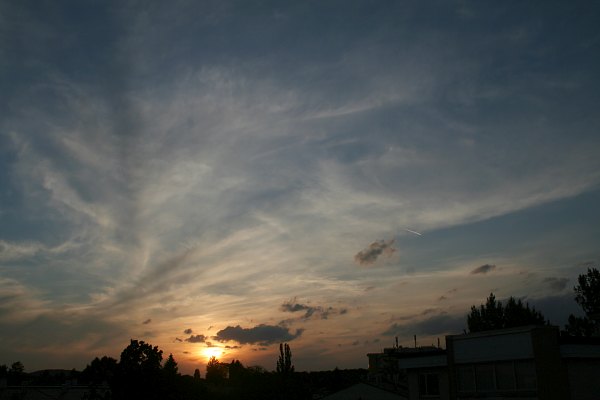 Es ist noch fast ein Tag bis zum exakten Vollmond (der bekanntlich ein unendlich kurzer Zeitpunkt ist, weshalb kein Ereignis genau zu Vollmond eintreten kann), doch der Abend ist trotz Wolken schon sehr dekorativ. Zuerst geht die Sonne hinter einem Vorhang von Cirren unter, ...