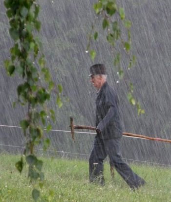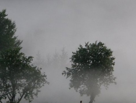 Als die Gewitterfront nach Stunden endlich abgezogen war, schlich sich aus dem Tal der Nebel heran und hüllte uns ein.