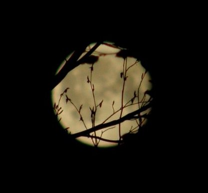 Dann gesellte sich noch der tiefstehende Mond dazu, blinzelte uns durch den Wald an und bot ein interessantes Fotomotiv.