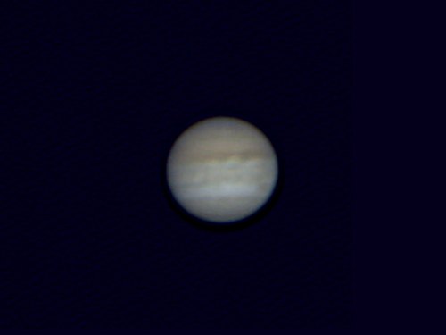 Ein grosses Wolkenloch zwischen der abziehenden Warm- und der aufziehenden Kaltfront lässt lang genug Zeit für einen Routineblick zu Jupiter. Erstaunlich einmal mehr der Unterschied zwischen der nördlichen und der südlichen Halbkugel. |