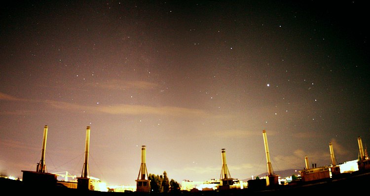 | Bericht: | Die Bedingungen sind heute leicht besser als gestern. Die Wolkenlöcher sind größer und der Himmel so klar, dass sogar aus der Stadt heraus die hellsten Partien der Milchstraße zu erkennen sind.