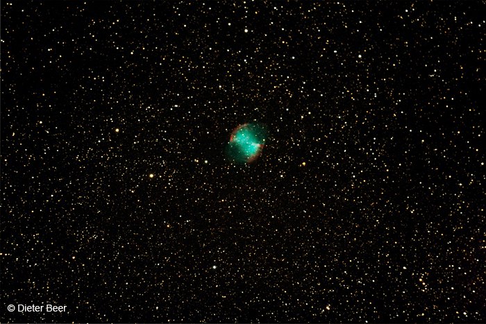 M27 - Hantelnebel. LXD75 10” SN, Canon EOS 350D, ISO800, L-Filter, Belichtung 1 x 4 min. + 1 x 3 min.