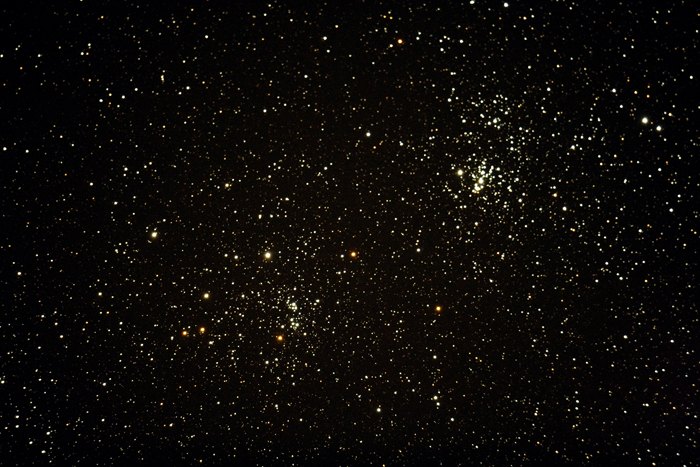 NGC 869 + 884 – h + χ Perseus. LXD75 10” SN, Canon EOS 350D, ISO800, L-Filter, Belichtung 1 x 3 min.