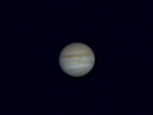 Zwei unterschiedliche Hälften, dunkel im Norden, hell im Süden, das gewohnte Bild bei Jupiter. Zum Schluss noch ein Blick zu dem schönen, schon tief stehenden Trio Jupiter - Antares - Mond: