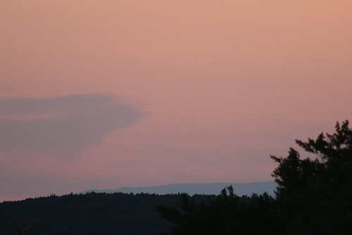 Während das Interview in der sommerlichen Wiese läuft, suchen und finden wir noch die Venus und verfolgen ihren Untergang. Im Fernrohr ist die Venus schon ein bemerkenswerter Anblick, trotz des problematischen Seeings in der geringen Höhe.