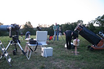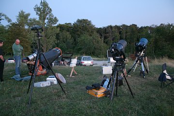 | Bericht: | Am Nachmittag verschwinden die letzten Wolken und machen einem strahlend klaren, wenngleich für die Jahreszeit etwas kühlen Abend Platz. Spontan setze ich eine Sonderastropraxis an; bei der Ankündigung traue ich mich nicht ganz zu erwähnen, dass das der einzige klare Abend dieser Woche werden würde. Ich möchte unseren Mitgliedern nicht die Vorfreunde auf Donnerstag nehmen, doch die Modelle sind sich leider in dieser Sache einig. So begrüßen wir den Augusthimmel gleich am ersten des Monats auf der Sofienalpe.