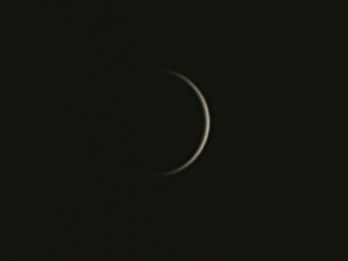 Ich habe die Venus schon heute Nachmittag von zuhause aufgenommen; wieso noch einmal? Der Grund ist ganz einfach: Hier, auf der Wiese, ist das Seeing erheblich besser als aus der Stadt, wo Gebäude und Straßen die Hitze abstrahlen. Daher hier das Ergebnis.