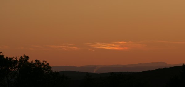Sonne und Venus gehen gemeinsam unter, Venus ist ein Grad über dem Horizont auch im Fernrohr nicht mehr zu erkennen. Im Sucher (8x50) und im Feldstecher war sie nie zu sehen. Im Fernrohr ist sie, wie gesagt, ein Erlebnis, und angesichts einer ekliptikalen Breite von mehr als 8° zur Zeit der unteren Konjunktion sollten wir sie, unter Wahrung aller Sicherheitsstandards, eigentlich durchgehend bis zur Morgensichtbarkeit verfolgen können. Kaum ist die Sonne untergegangen, beginnt die Dämmerung ihr wunderbares Farbenspiel.