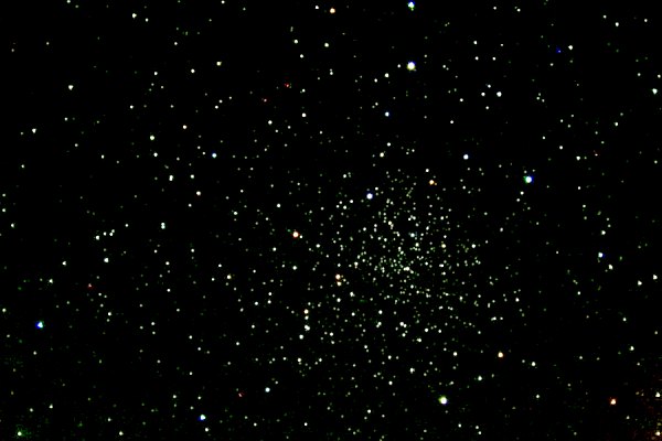 Die Perseiden sind nahezu abgeklungen. Ein sehr heller Kappa-Cygnide, hell, grün, mit Leuchtspur, und ein sehr heller Iridium-Flare entschädigen uns und sorgen für Abwechslung. Nach Mitternacht entscheide ich mich doch noch zu einigen Deep Sky Fotos. Mit dem auf f/3.3 verkürzten 12" LX-200 nehme ich mit der EOS 350D ein paar Sternhaufen auf. Alle Aufnahmen mit 1600 ISO und verkleinerte Bildausschnitte.