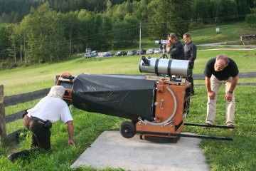 Gegen 1.30 Uhr, also eigentlich schon recht früh, bauen die letzten Beobachter ab. Die Nacht ist nicht so gut wie die letzte, die Müdigkeit größer. Zufrieden beenden wir die dritte schöne Beobachtungsnacht dieser Summer Star Party 2007. |